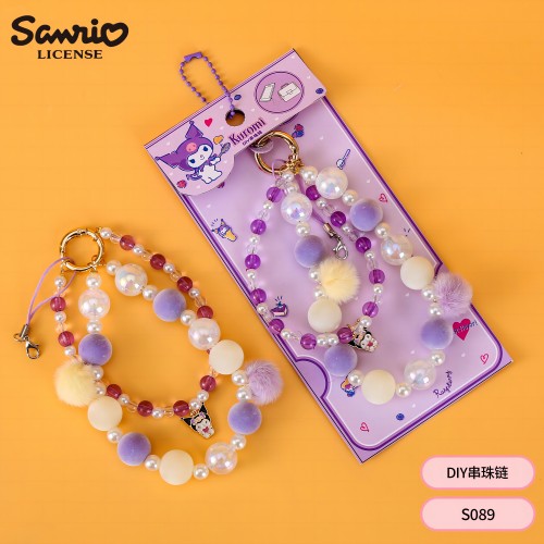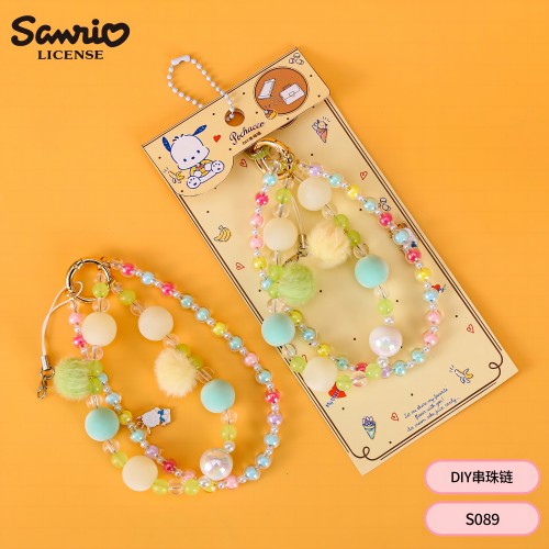 三丽鸥DIY手机串珠链 绒球