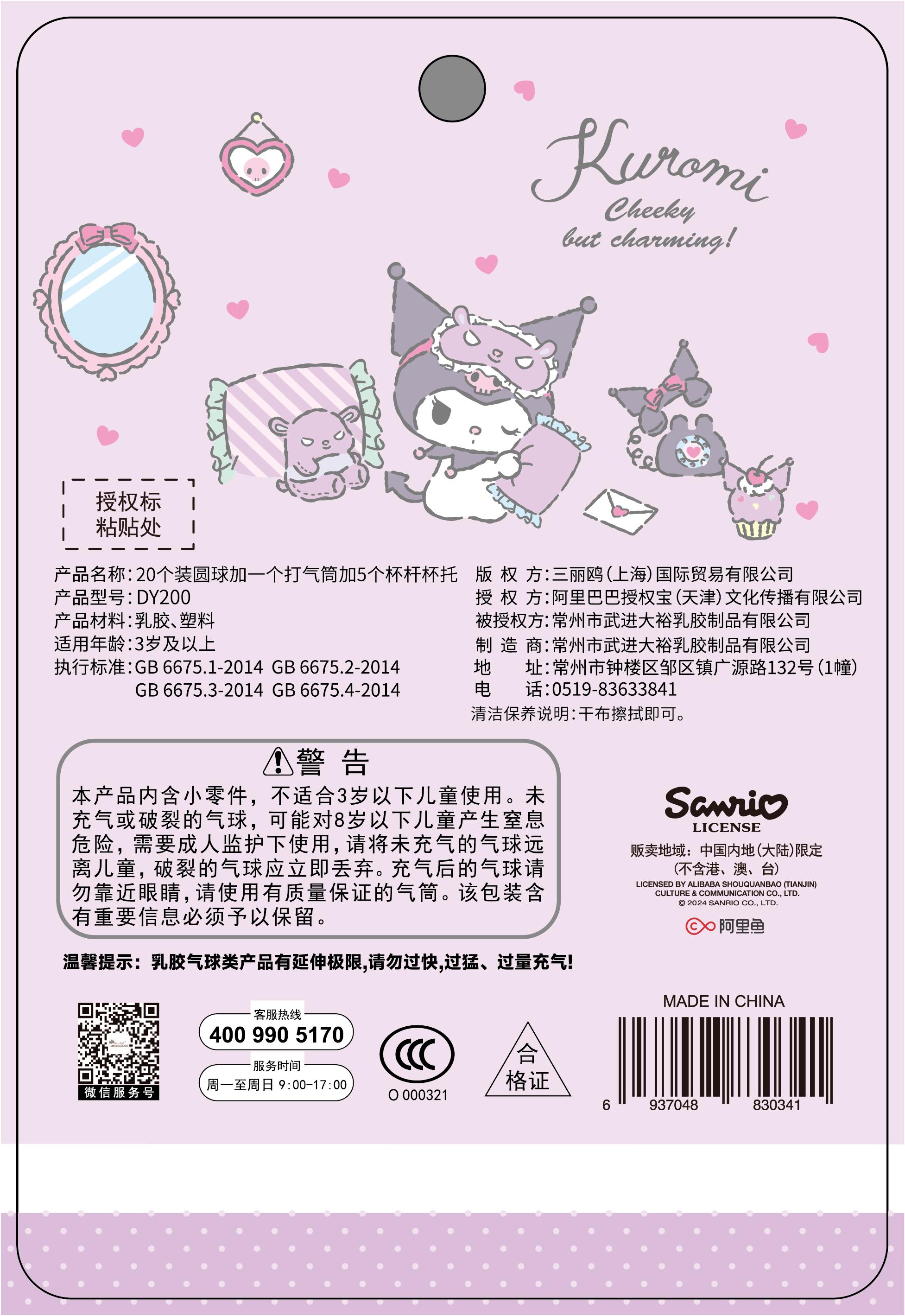 三丽鸥20个装圆球加一个打气筒加5个杯杆杯托、15个装心形球加1个打气筒
