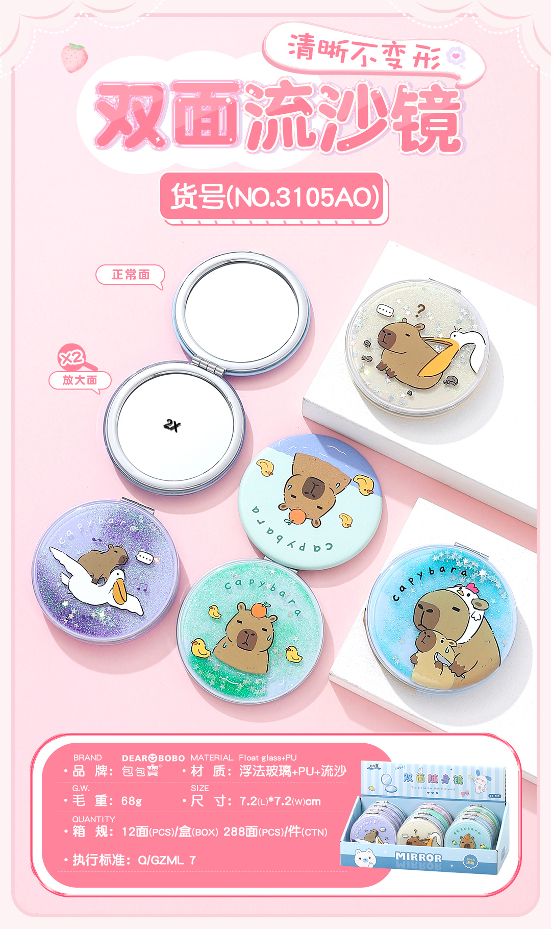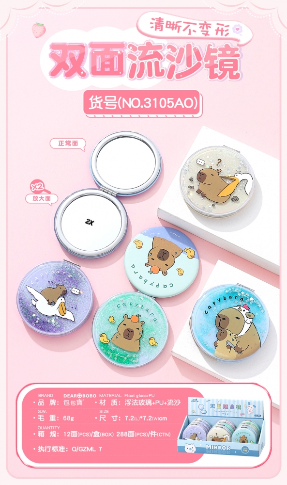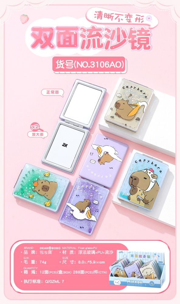 包包寳新品-双面镜-浮法玻璃+PU皮+流沙
