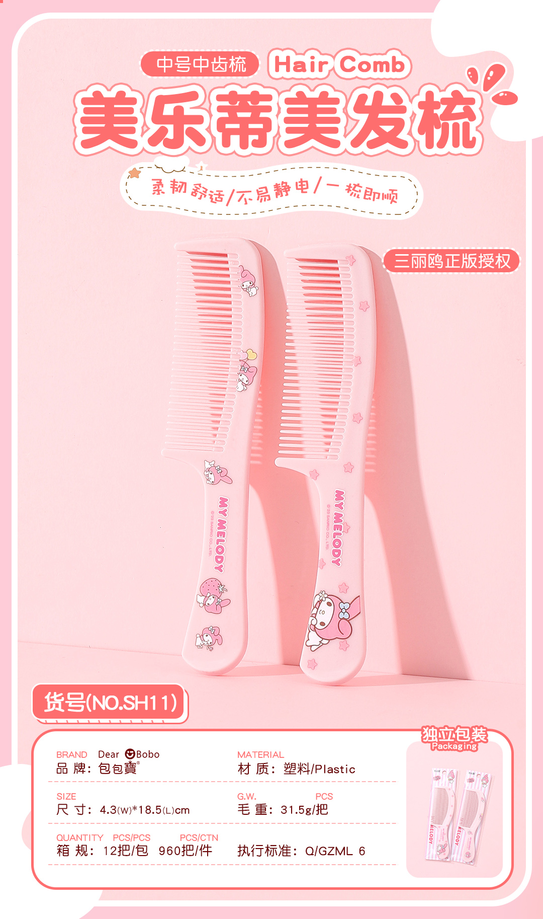 包包寳新品-三丽鸥家族美发梳