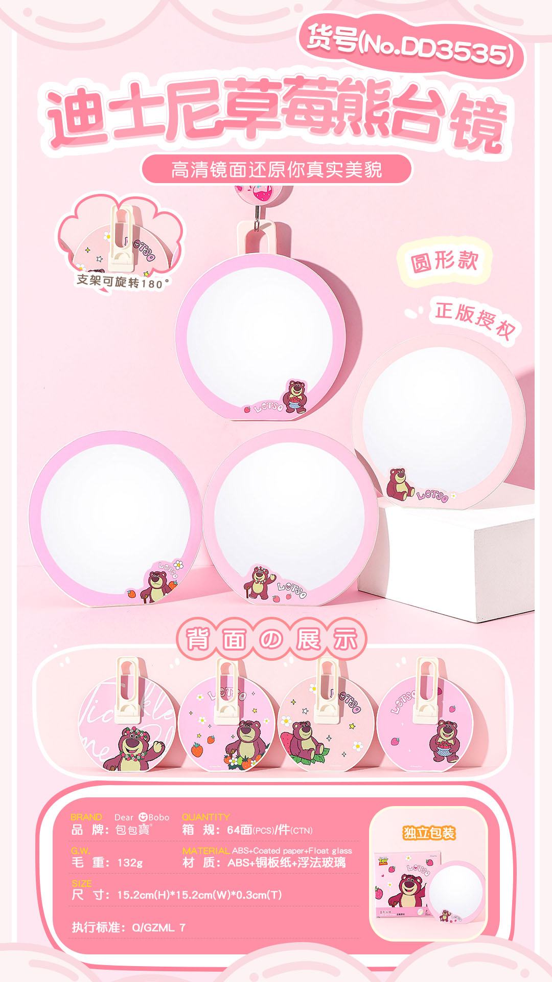 包包寳新品-迪士尼草苺熊台镜