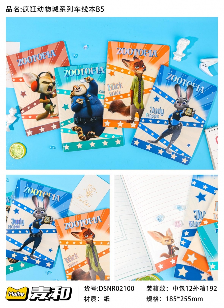 杭州麦和疯狂动物城系列车线本B5