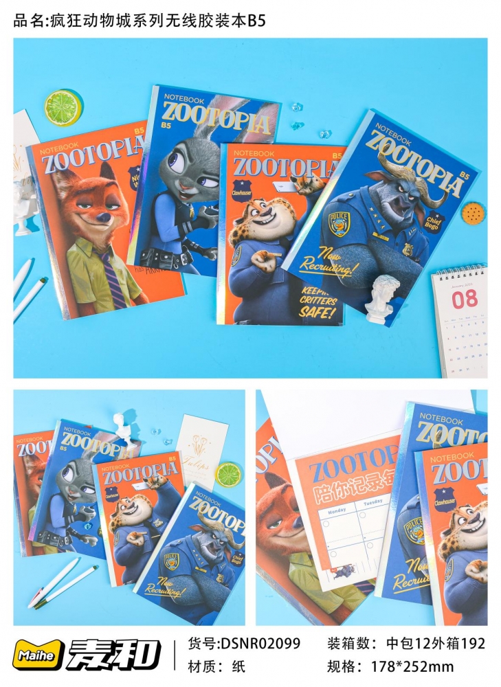 杭州麦和疯狂动物城系列无线胶装本B5