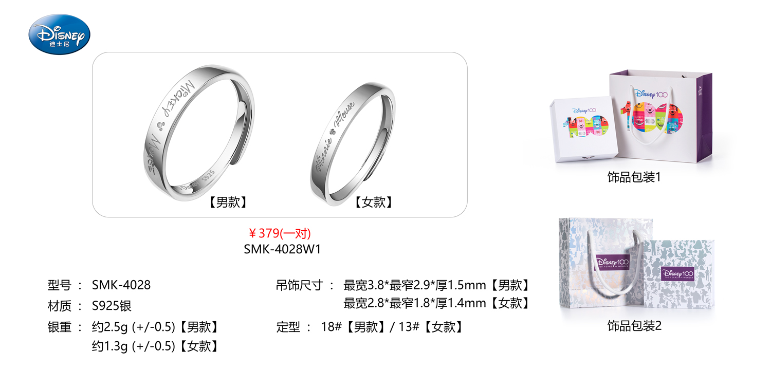 深圳百迪表业米奇银色对戒