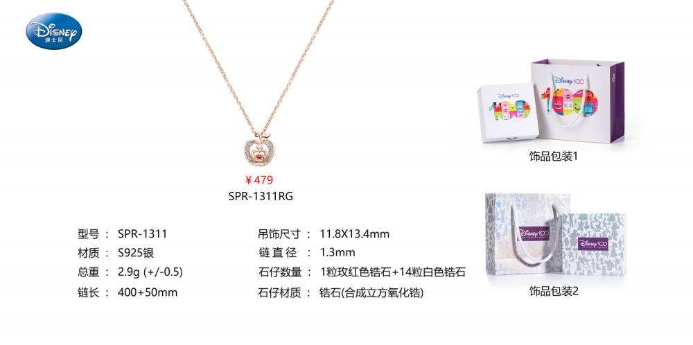 深圳百迪表业公主玫瑰金项链