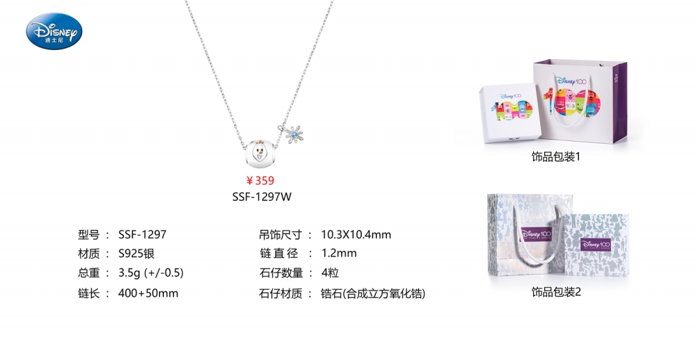 深圳百迪表业雪宝银色项链