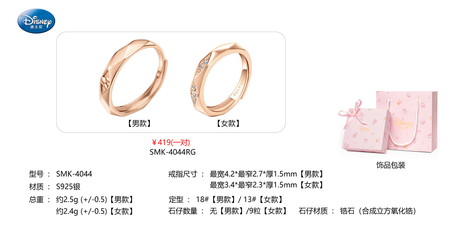 深圳百迪表业米奇玫瑰金情侣对戒