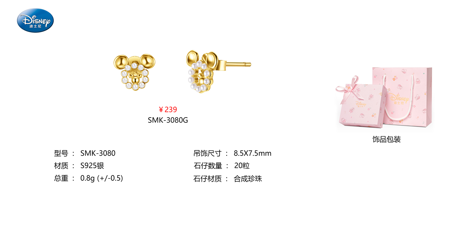 深圳百迪表业米奇金色耳钉