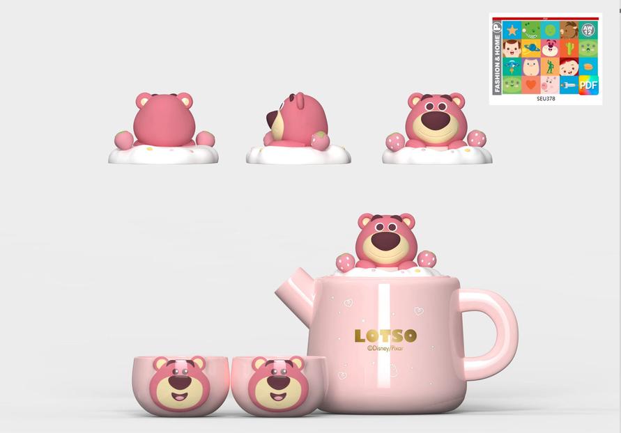 海鸿陶瓷皮克斯草莓熊茶壶套装